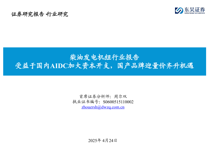 【东吴证券】【20250424】柴油发电机组行业报告:受益于国内AIDC加大资本开支,国产品牌迎量价齐升机遇-41页