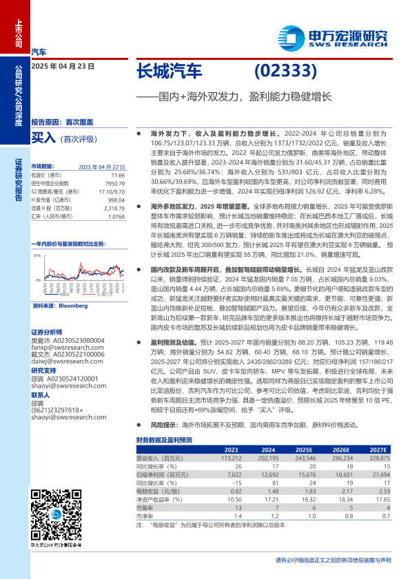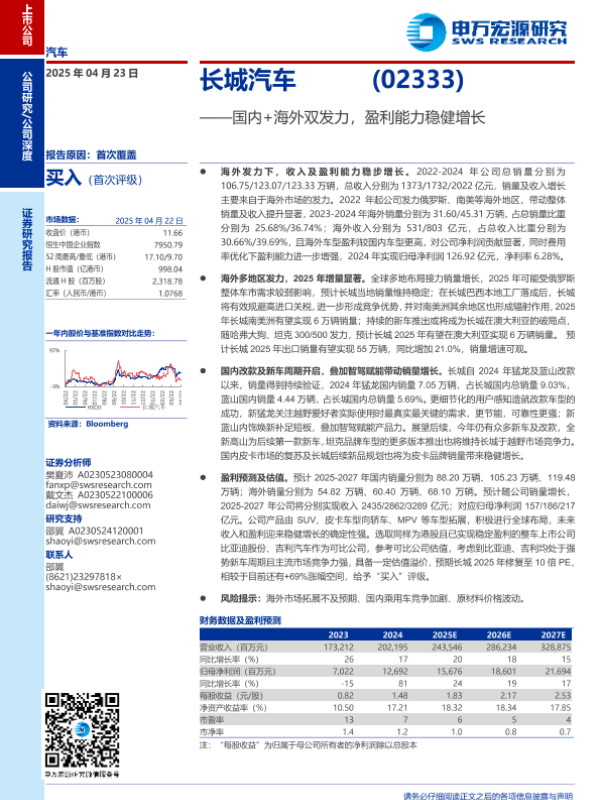 【申万宏源】【20250423】长城汽车 (02333)国内+海外双发力,盈利能力稳健增长-23页