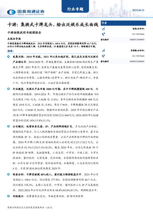 【国泰海通证券】【20250421】卡游:集换式卡牌龙头,绘出泛娱乐成长曲线-12页