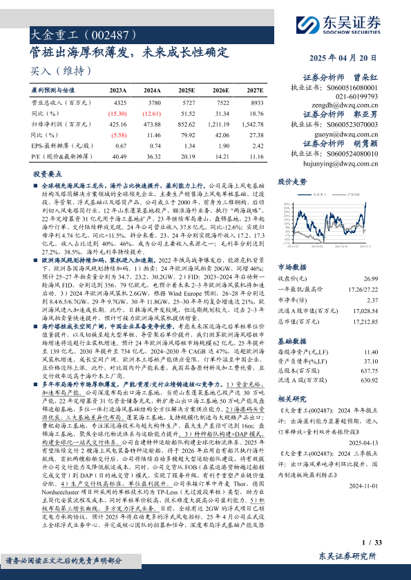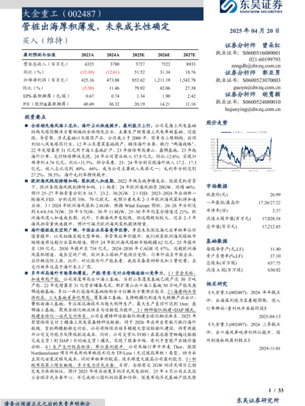 【东吴证券】【20250420】大金重工(002487)管桩出海厚积薄发,未来成长性确定-33页