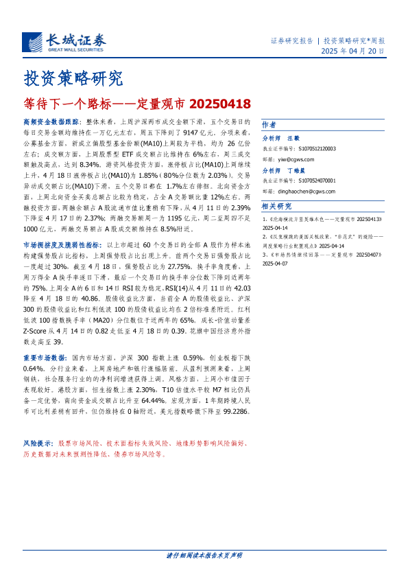 【长城证券】【20250420】等待下一个路标——定量观市-15页