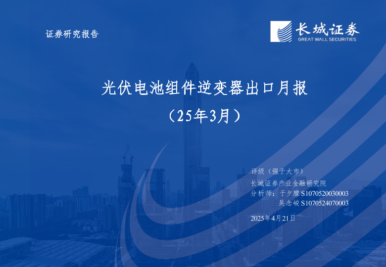【长城证券】【20250421】光伏电池组件逆变器出口月报-17页