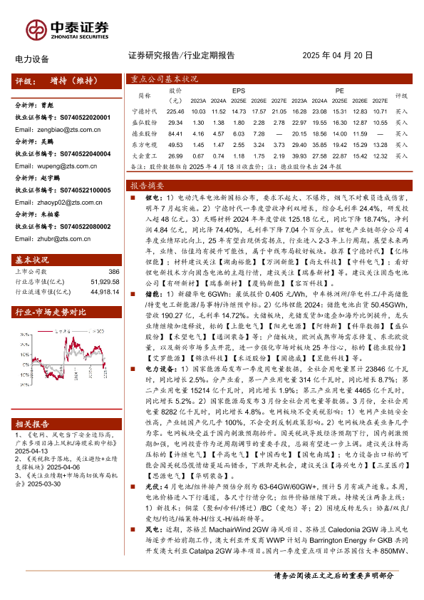 【中泰证券】【20250420】电力设备行业:电动汽车电池新国标公布,3.1GW海上风机进行招投标-16页