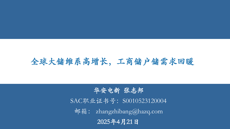 【华安证券】【20250421】全球大储维系高增长,工商储户储需求回暖-32页