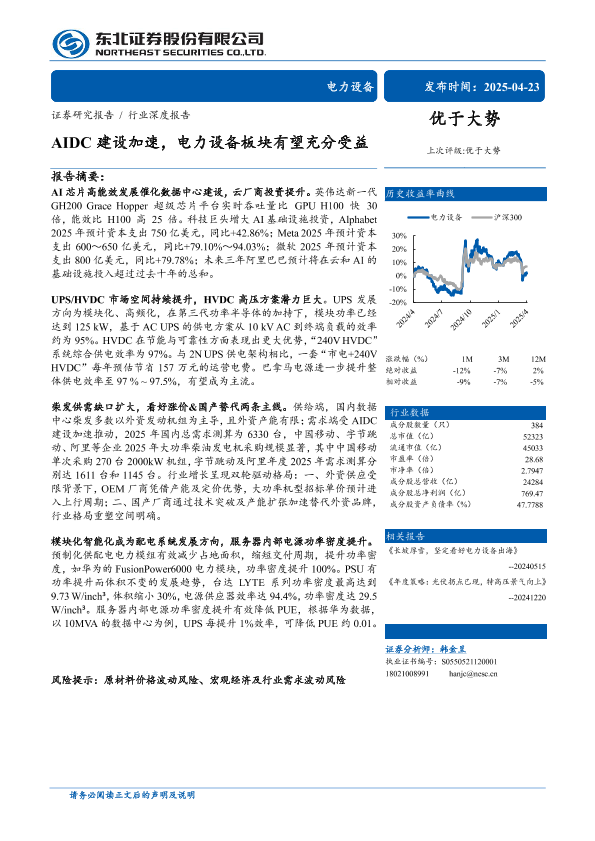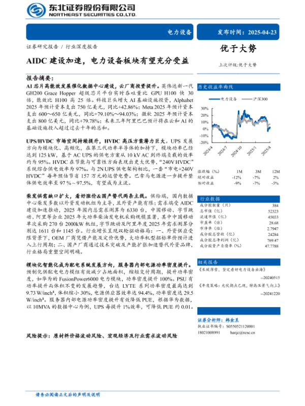 【东北证券】【20250423】AIDC建设加速,电力设备板块有望充分受益-58页