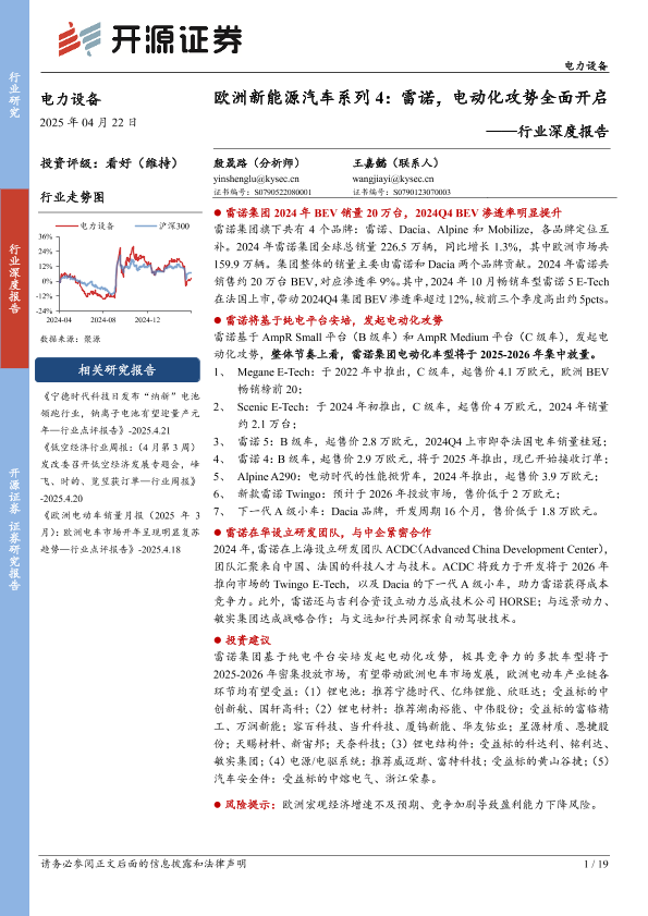 【开源证券】【20250422】欧洲新能源汽车系列4:雷诺,电动化攻势全面开启-19页