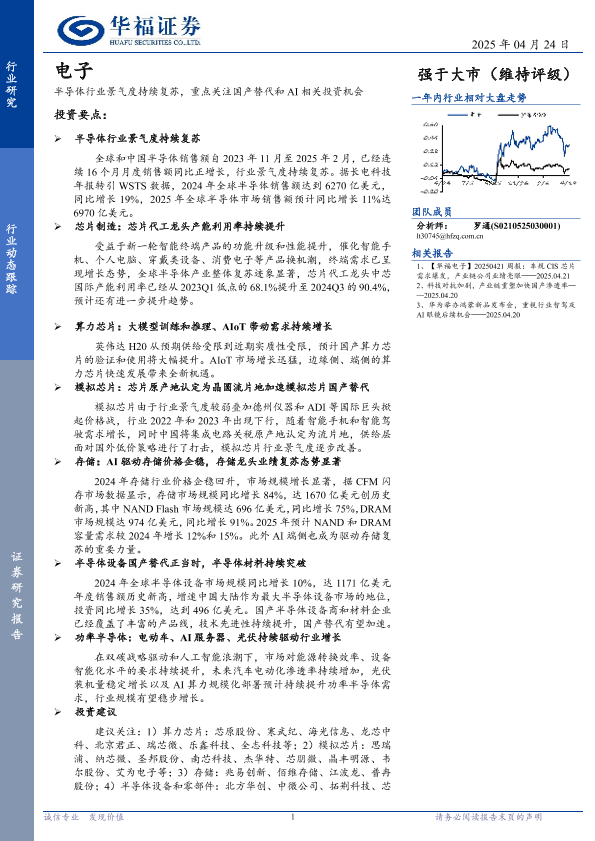 【华福证券】【20250424】电子行业动态跟踪:半导体行业景气度持续复苏,重点关注国产替代和AI相关投资机会-13页