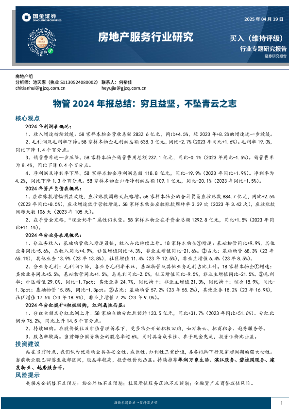 【国金证券】【20240419】房地产服务行业研究-物管2024年报总结-19页