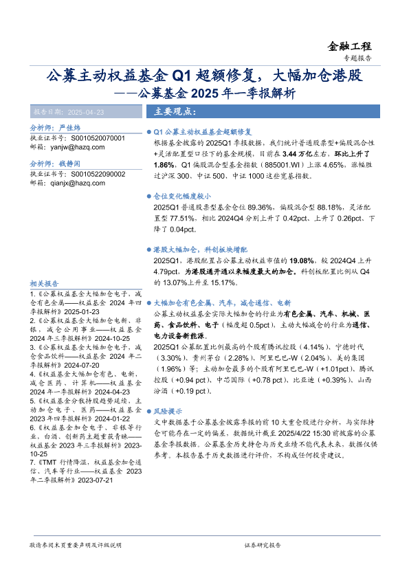 一季报 公募基金 权益基金 港股 超额收益