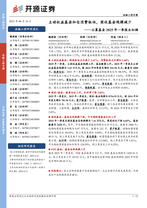 【开源证券】【20250424】公募基金2025年一季报全扫描-22页