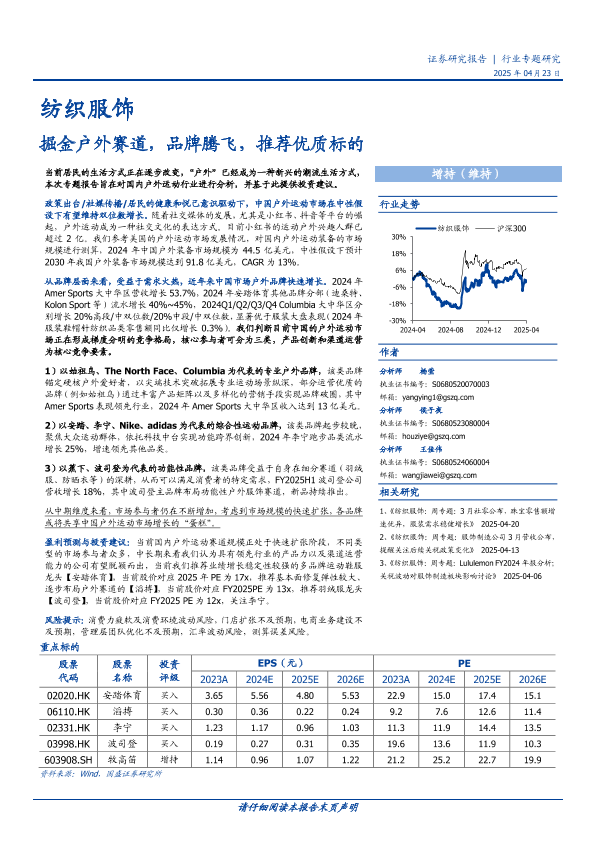 【国盛证券】【20250423】纺织服饰行业专题研究:掘金户外赛道,品牌腾飞,推荐优质标的-27页