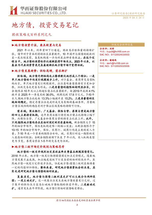 【华西证券】【20250424】地方债,投资交易笔记-23页