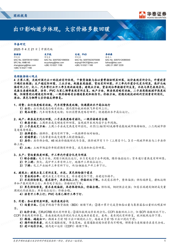 【华泰证券】【20250421】出口影响逐步体现,大宗价格多数回暖-14页