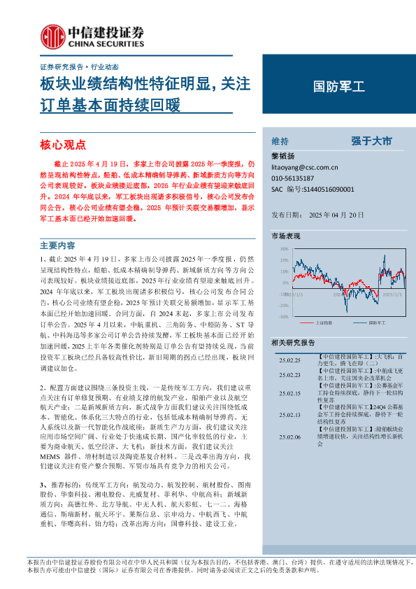 【中信建投证券】【20250420】国防军工行业:板块业绩结构性特征明显,关注订单基本面持续回暖-27页