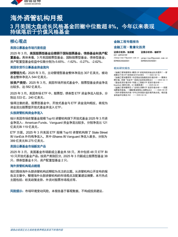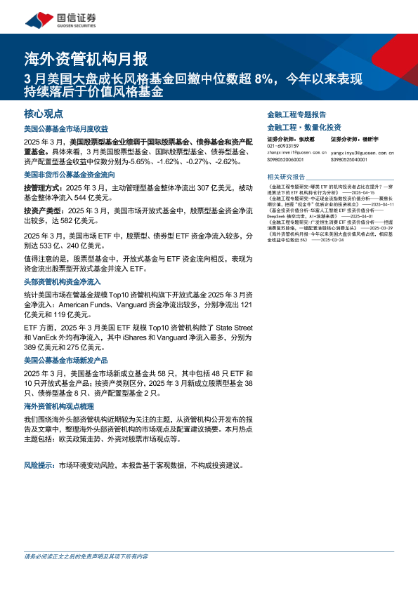 【国信证券】【20250418】海外资管机构月报:3月美国大盘成长风格基金回撤中位数超8%, 今年以来表现持续落后于价值风格基金-15页