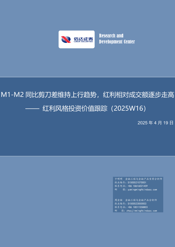 【信达证券】【20250419】红利风格投资价值跟踪:M1-M2同比剪刀差维持上行趋势,红利相对成交额逐步走高-14页