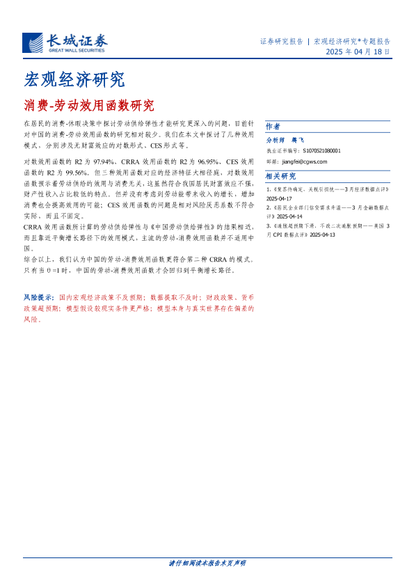 【长城证券】【20250418】宏观经济研究:消费-劳动效用函数研究-10页