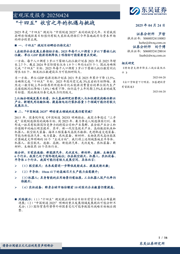 【东吴证券】【20250424】“十四五”收官之年的机遇与挑战-16页