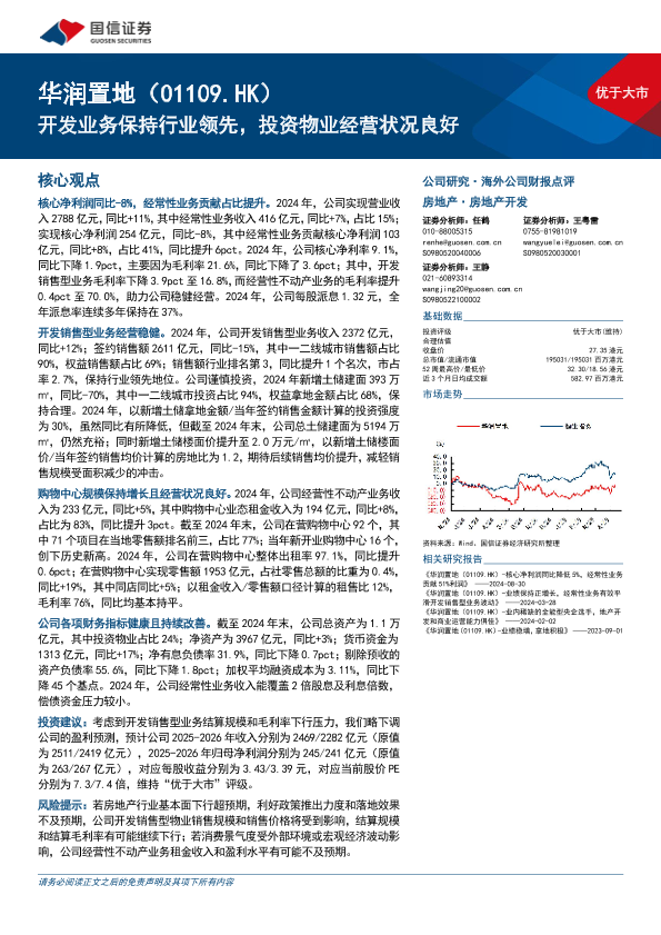 【国信证券】【20250422】华润置地开发业务保持行业领先,投资物业经营状况良好-12页