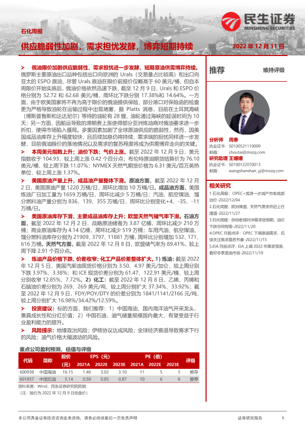 【民生证券】【20221211】石化周报:供应脆弱性加剧,需求担忧发酵,博弈短期持续-29页