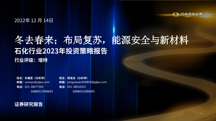 【国泰君安证券】【20221214】石化行业2023年投资策略报告:冬去春来;布局复苏,能源安全与新材料-58页