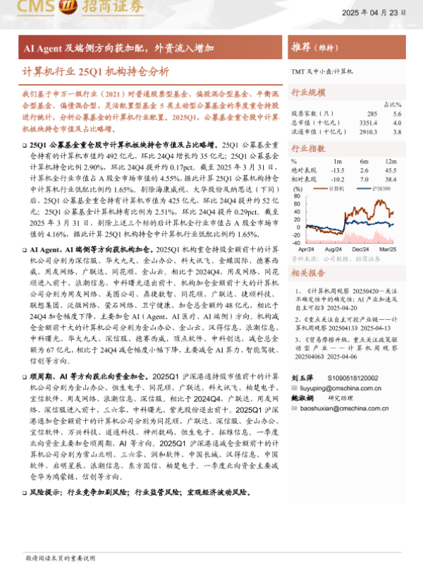 AI技术 外资流动 市场趋势 机构持仓分析 计算机行业