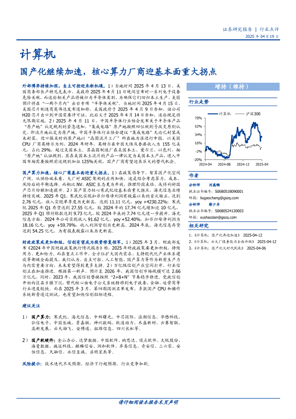 【国盛证券】【20250419】计算机行业点评:国产化继续加速,核心算力厂商迎基本面重大拐点-10页