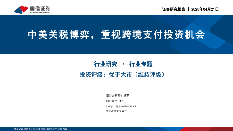 【国信证券】【20250421】中美关税博弈,重视跨境支付投资机会-10页