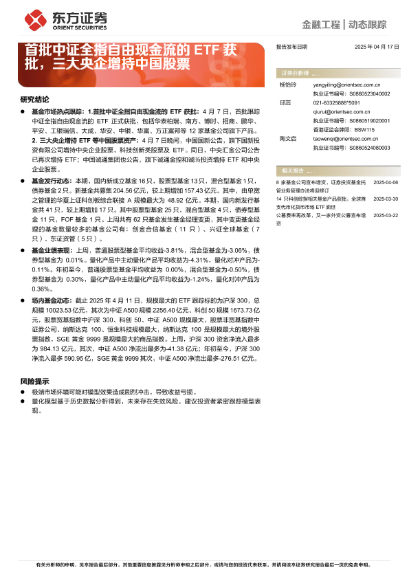 【东方证券】【20250417】金融工程动态跟踪:首批中证全指自由现金流的ETF获批,三大央企增持中国股票-13页