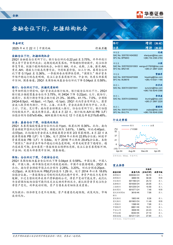 【华泰证券】【20250422】金融行业月报:金融仓位下行,把握结构机会-24页