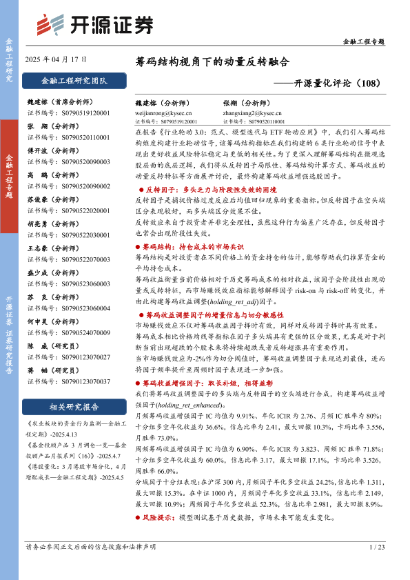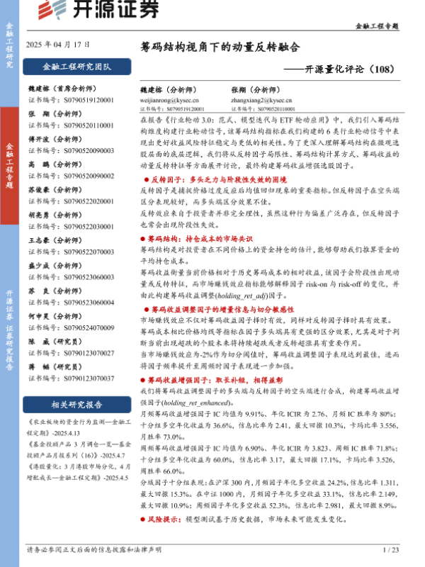 【开源证券】【20250417】开源量化评论(108):筹码结构视角下的动量反转融合-23页