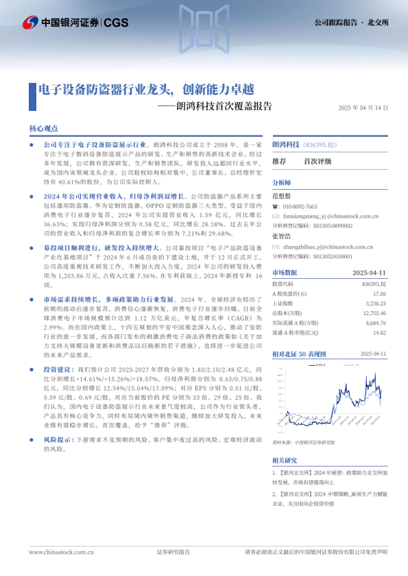 【银河证券】【20250414】朗鸿科技首次覆盖报告:电子设备防盗器行业龙头,创新能力卓越-17页