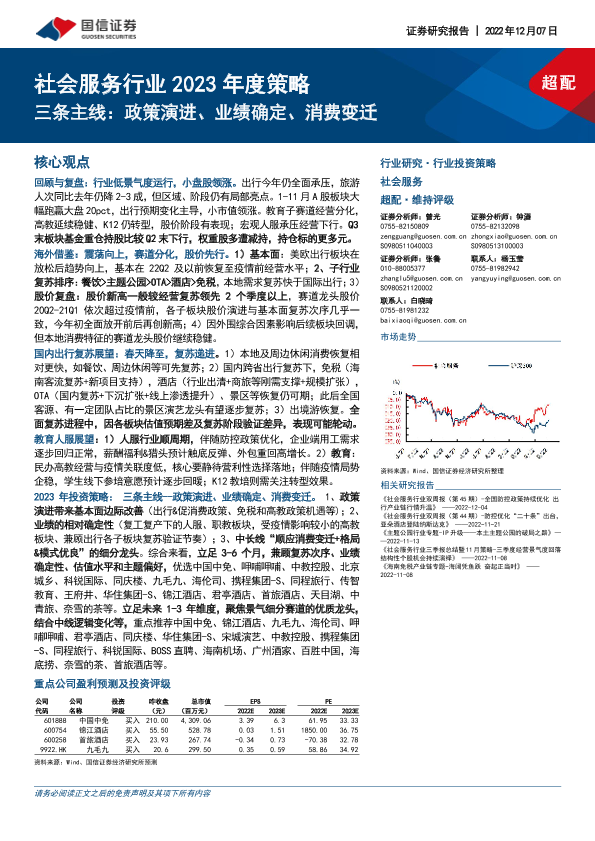 【国信证券】【20221207】社会服务行业2023年度策略:三条主线:政策演进、业绩确定、消费变迁-50页