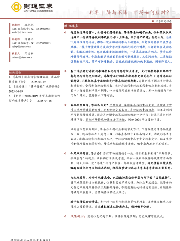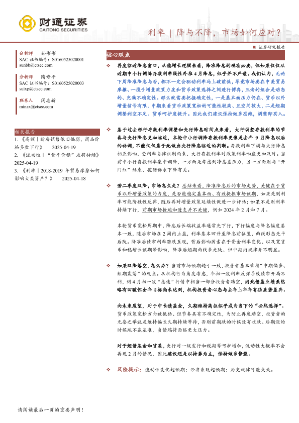 【财通证券】【20250425】利率|降与不降,市场如何应对?-23页