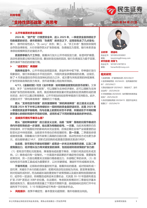 【民生证券】【20250423】利率专题:“支持性货币政策”再思考-15页