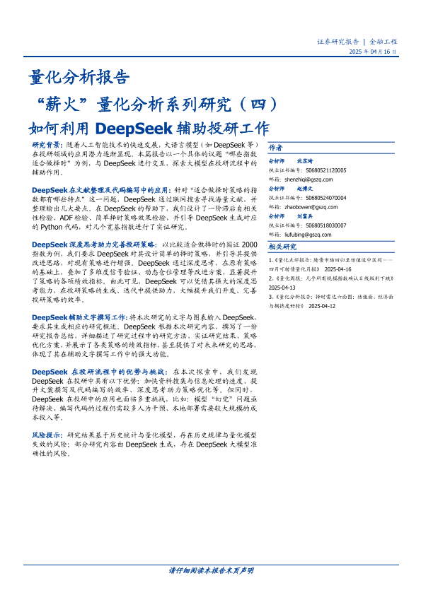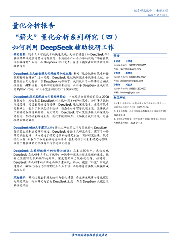 【国盛证券】【20250416】量化分析报告:“薪火”量化分析系列研究(四),如何利用DeepSeek辅助投研工作-22页