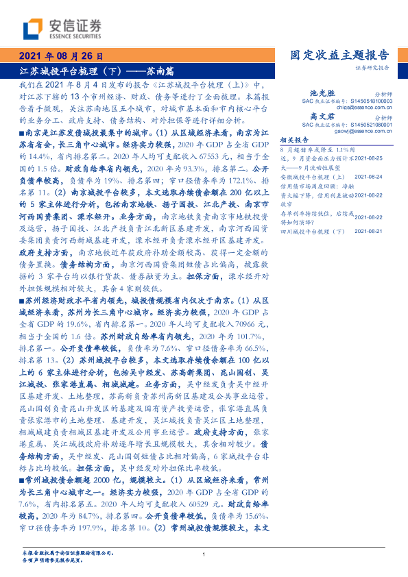 【安信证券】【20210826】江苏城投平台梳理(下):苏南篇-38页