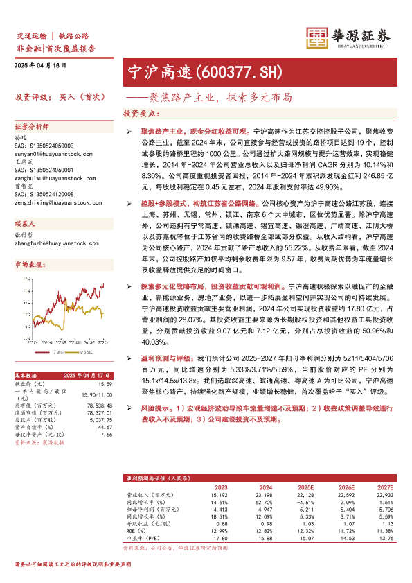 【华源证券】【20250418】宁沪高速(600377)聚焦路产主业,探索多元布局-18页