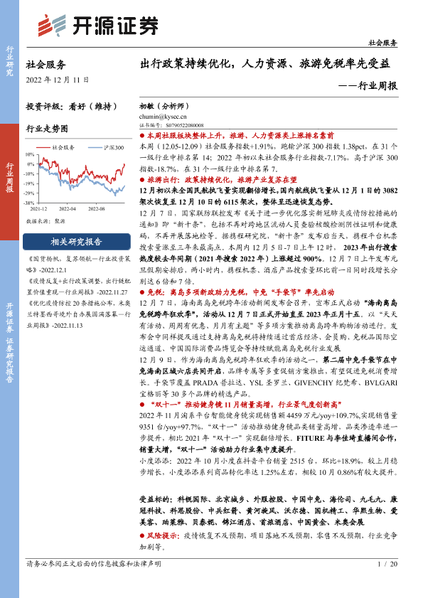 【开源证券】【20221211】社会服务行业周报:出行政策持续优化,人力资源、旅游免税率先受益-20页