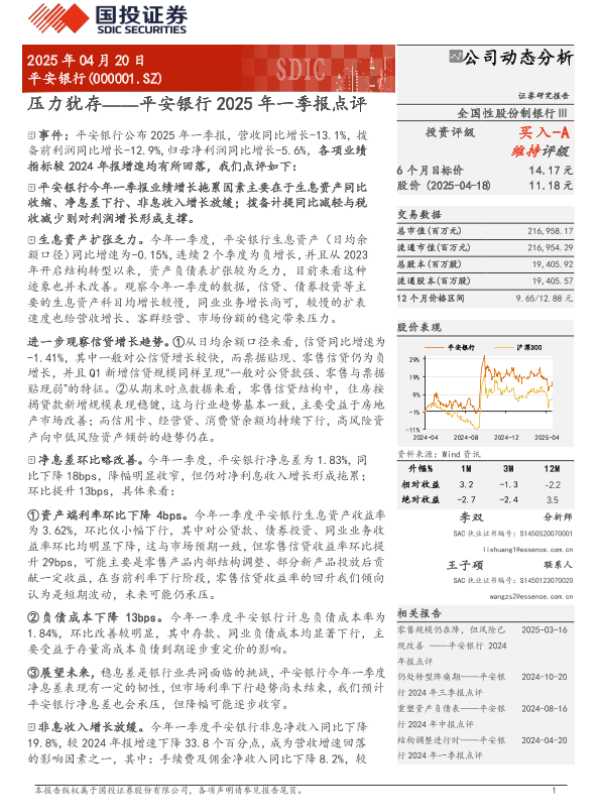 【国投证券】【20250420】平安银行2025年一季报点评:压力犹存-12页