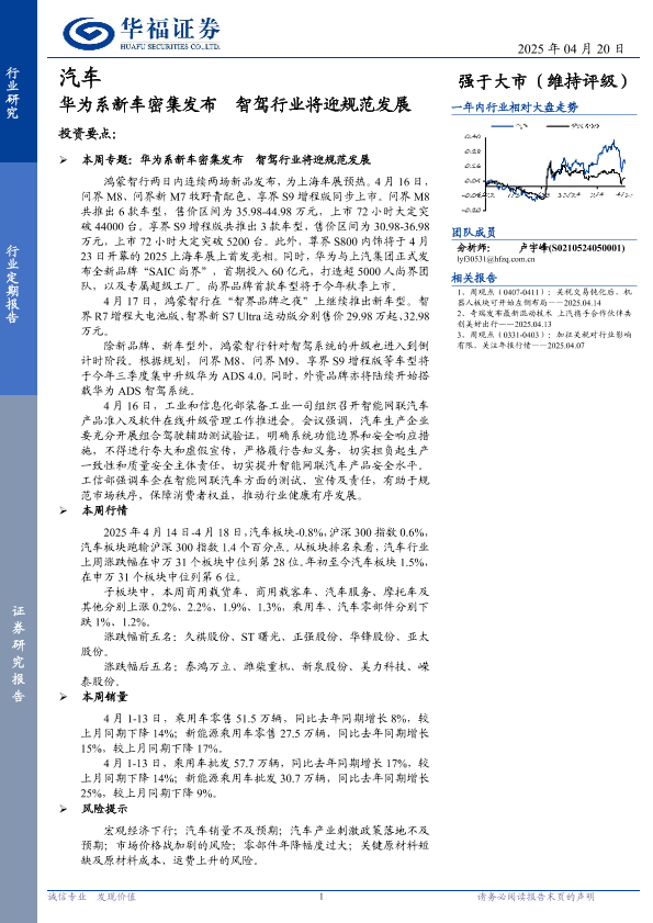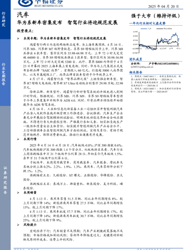 【华福证券】【20250420】汽车行业定期报告:华为系新车密集发布,智驾行业将迎规范发展-12页
