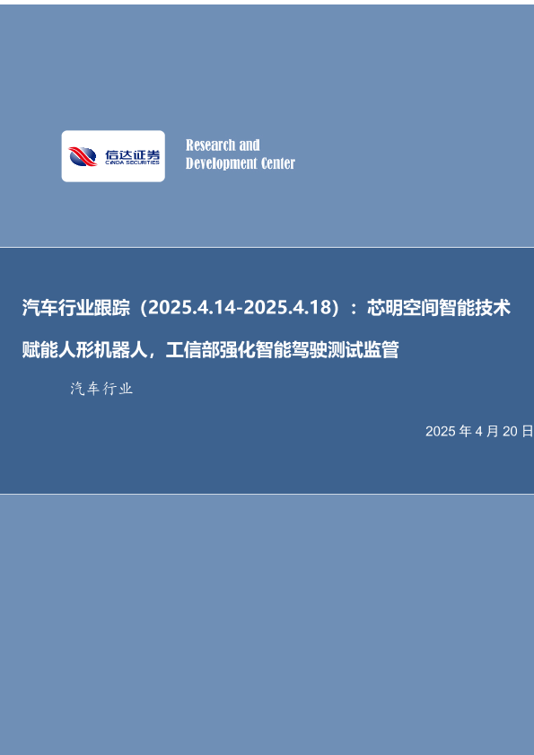 【信达证券】【20250420】汽车行业跟踪:芯明空间智能技术赋能人形机器人,工信部强化智能驾驶测试监管-15页