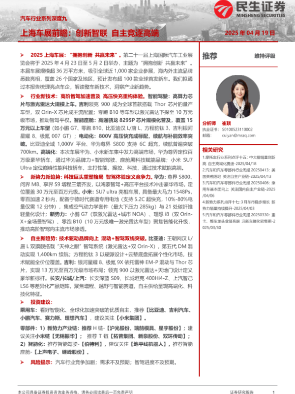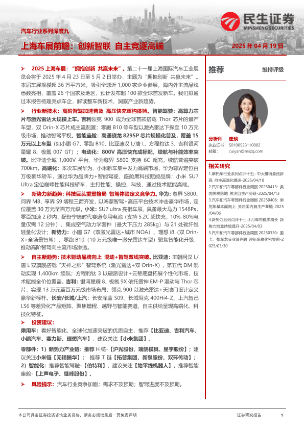 【民生证券】【20250419】汽车行业系列深度九-上海车展前瞻:创新智联,自主竞逐高端-45页