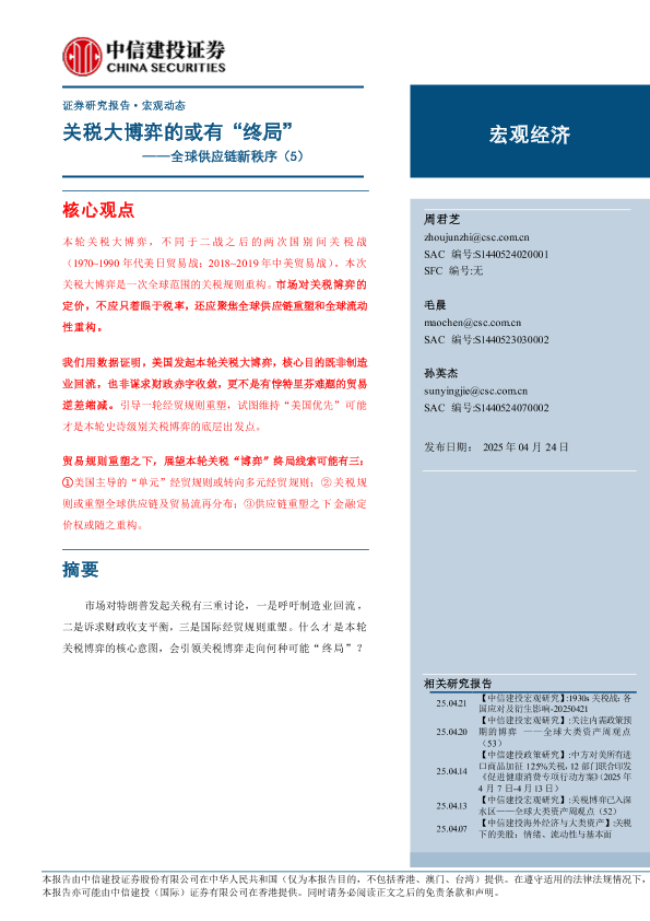 【中信建投证券】【20250424】全球供应链新秩序(5):关税大博弈的或有“终局”-21页