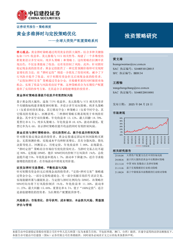 【中信建投证券】【20250423】全球大类资产配置策略系列:黄金多维择时与定投策略优化-22页