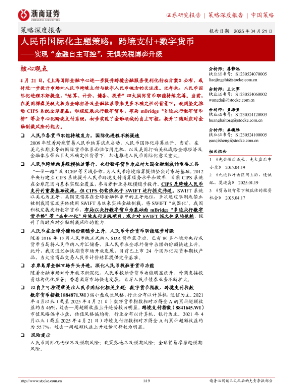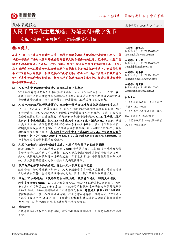 【浙商证券】【20250421】人民币国际化主题策略:跨境支付+数字货币——实现“金融自主可控”,无惧关税博弈升级-19页