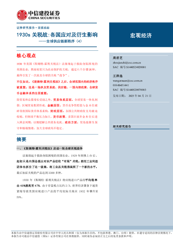 【中信建投证券】【20250421】1930s关税战:各国应对及衍生影响-17页