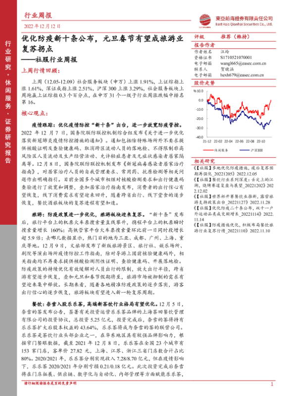 【东亚前海证券】【20221212】社服行业周报:优化防疫新十条公布,元旦春节有望成旅游业复苏拐点-19页