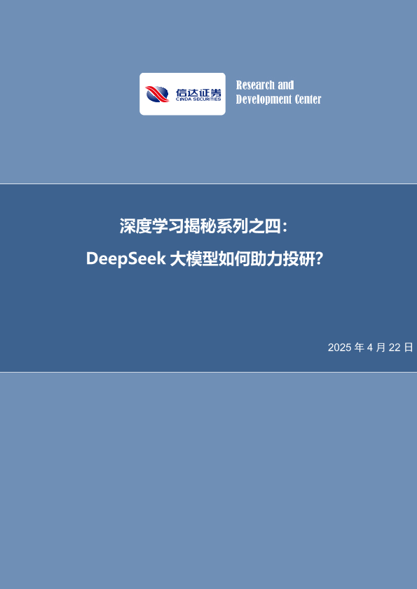 【信达证券】【20250422】深度学习揭秘系列之四:DeepSeek大模型如何助力投研?-30页