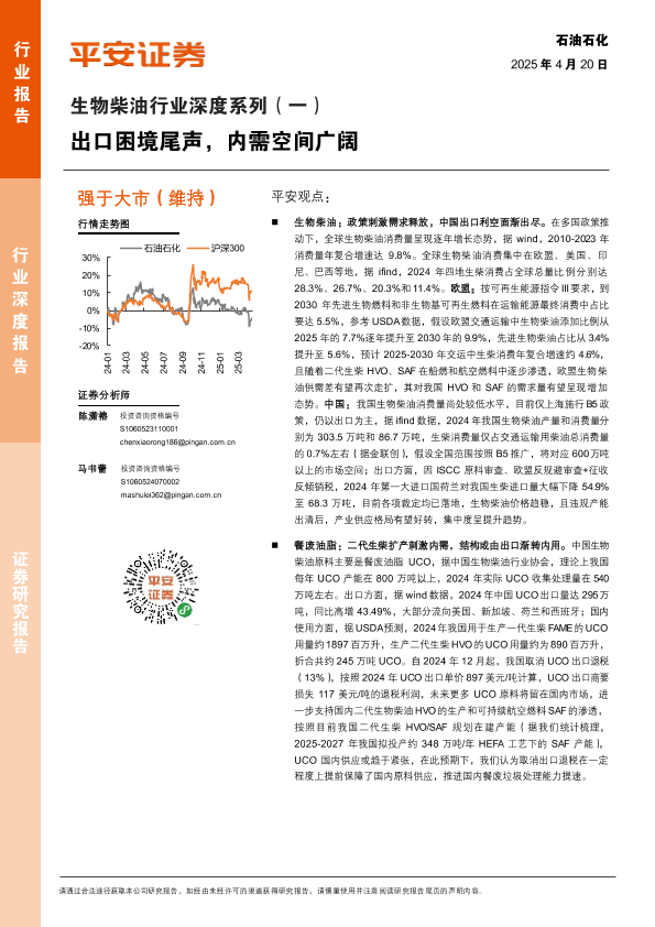 【平安证券】【20250420】石油石化行业生物柴油行业深度系列(一):出口困境尾声,内需空间广阔-27页